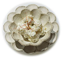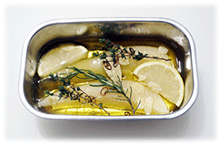 <材料> カズノコ、タイム、ローリエ、レモン、赤唐辛子、ローズマリー、オリーブオイル、ニンニクスライス <ポイント、及び注意点> @オリーブオイルには1日以上漬ける。 A輪切り赤唐辛子の赤い色がカズノコに付くので、注意して漬け込みをする。 |